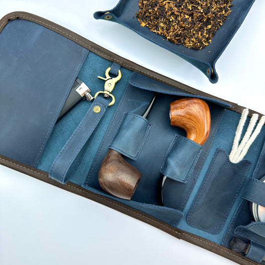 Leather Tobacco Pipe Roll with Tray and Pipe Stand, Pipe Smoking Travel Case