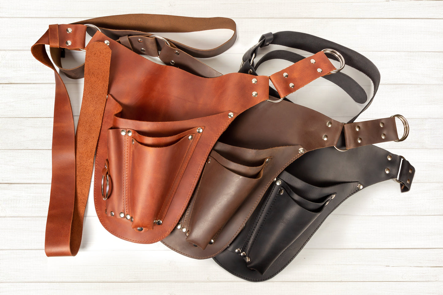 🌠The tool belt has an adjustable strap, which can be fastened around the waist to keep it in place while working. The strap is made of the same durable leather material as the pockets and has two rings closure for easy adjustment.Â